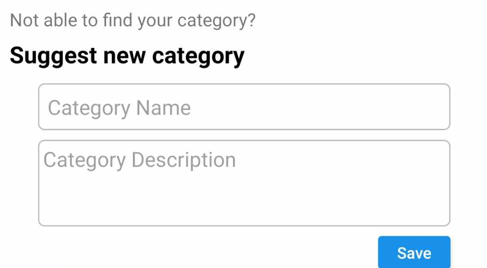 If you are not able to find the exact category you wish for, you can Suggest New Category.