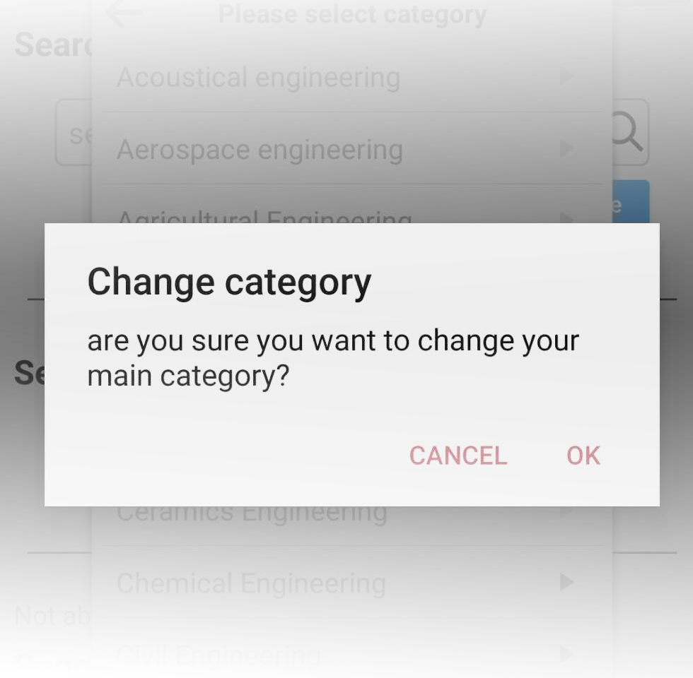 - Once you tap your sub-category you will receive a warning pop-up message asking if you are sure you want to change your category (as you were signed in by default as a personal profile). If you are sure; click OK.